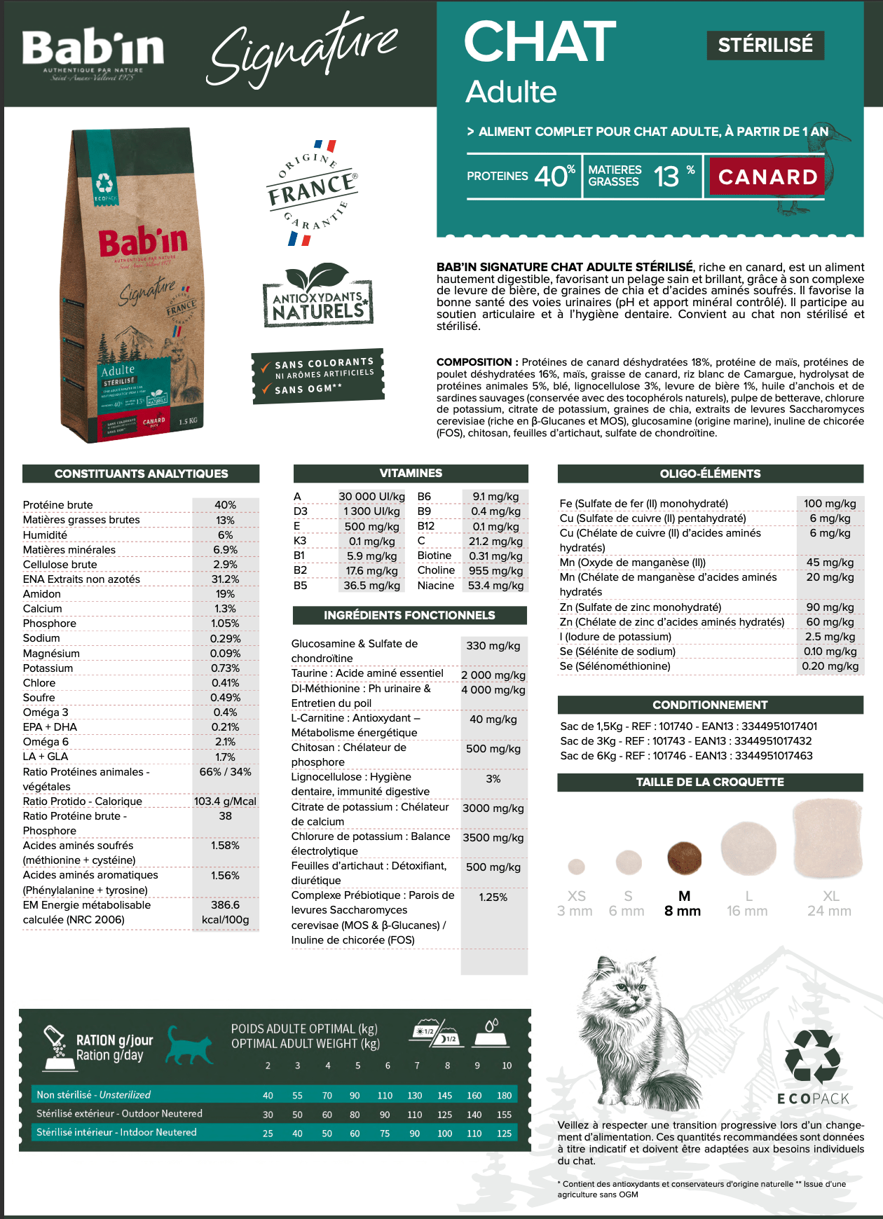 Recette adaptée aux chats adultes stérilisés et non stérilisés
