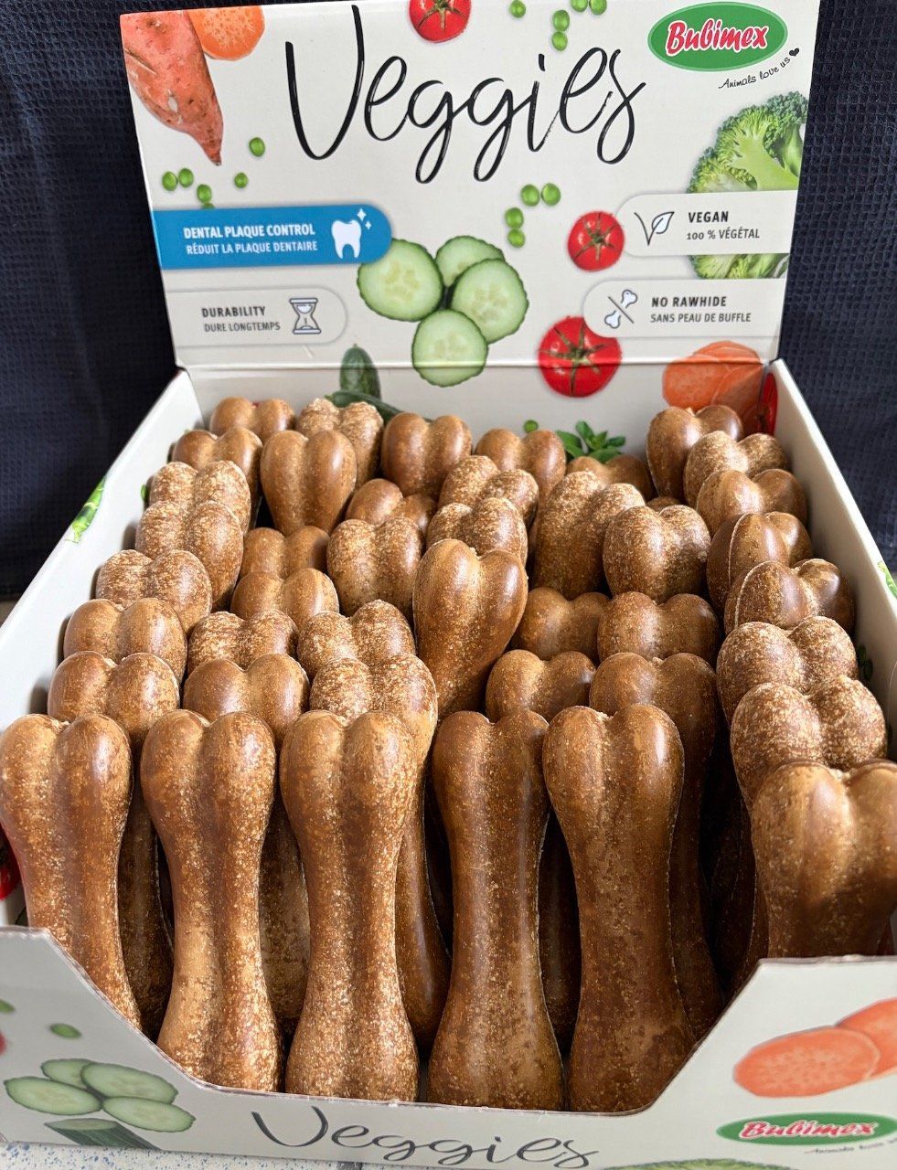 L' Os de riz Veggie est une friandise à mâcher pour votre chien ou chiot, il est sans gluten et participe au nettoyage de ses dents.